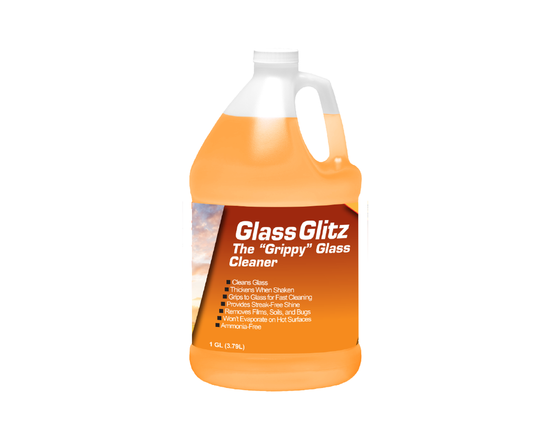 The best glass cleaner, GLASS GLITZ is a streak-free, ready-to-use formula that dissolves films, light to heavy soils, fingerprints, bugs, and much more. Ideal for glass, windshields, windows and mirrors. GLASS GLITZ grips glass, which makes cleaning vertical glass surfaces easier. GLASS GLITZ also contains a pleasant odor neutralizer, formulated to kill odors at their source.