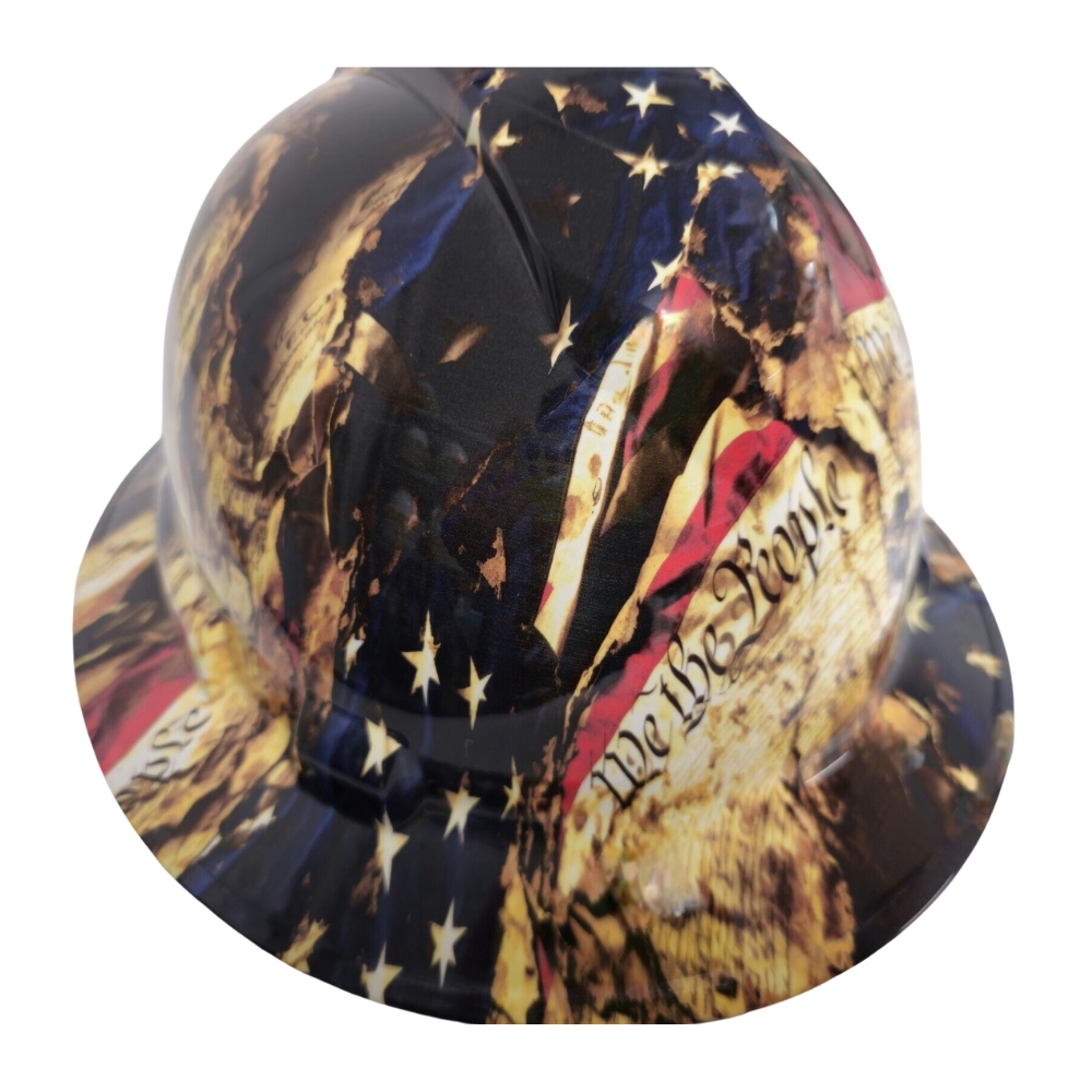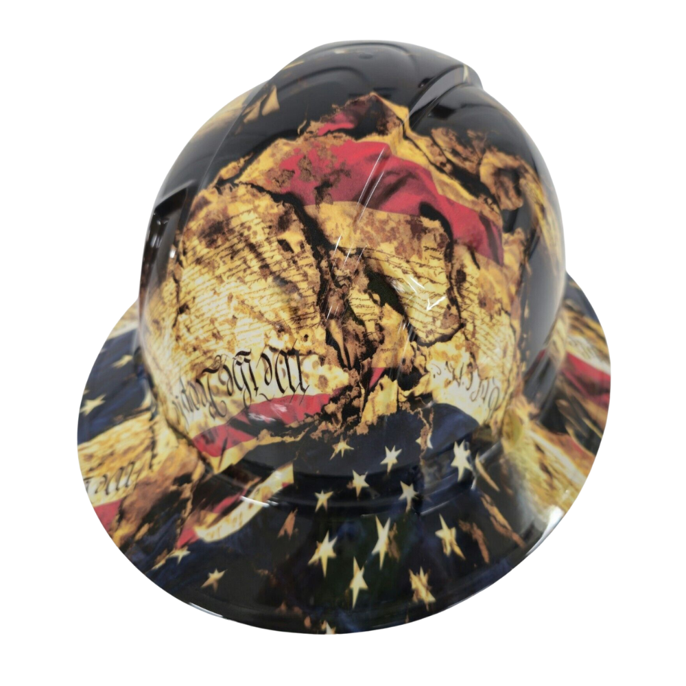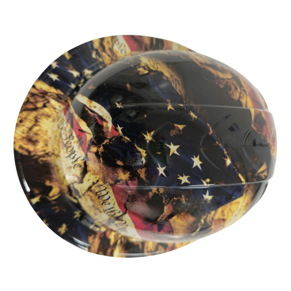 WET WORKS IMAGING hydro dipped hard hat . That has been custom dipped in house wet works imaging , premium printed and then clear coated for that mirror like shine you see in our photos . PLEASE IF YOU ARE COMPARING THIS TO OTHERS GO AND ENLARGE PHOTOS TO SEE THE REAL DIFFERENCE PLEASE COMPARE OUR SHINE TO THE MORE EXPENSIVE COMPETITION , THERE IS NO COMPARISON , GO COMPARE THEN COME BACK TO THE BEST PRICE , BEST SHINE , BEST HYDRO DIPPED HARD HAT ON THE INTERNET PERIOD . We are the only hydro dippers approved by the manufacturer to dip the Ridgeline hard hat . We meet stringent quality control guidelines that manufacturers demand , so you know you are getting a quality product . All Ridgeline hard hats that we sell are ANSI TYPE 1 CLASS C, G , AND E , OSHA APPROVED , and come with a fully adjustable swing and ratchet head gear that fits hat size 6 3/4 to 8. Padded rear section of head gear is a super nice touch not to mention the super soft replaceable front sweat band., the head gear is also fully adjustable front to back and up and down 2 different positions each and this is one of the lightest hard hats on the market coming in at under a pound WOW!!!!!!! This type of quality fit and finish and don't forget the PRICE . There's only one place to get all this .WET WORKS IMAGING . All of our hard hats comes with free shipping and the piece of mind you are getting the best in our opinion hard hat out there . All images will be as close to photos as possible , please bear in mind that hydro dipped hard hats are like finger prints two will look close but never the same . So yours will be unique to you and only you . All of our Ridgeline hard hats are direct bond to plastic application meaning no chance of the print lifting off of any of our hard hats , the clear coat may scratch but rest assured the print will not come off . WET WORKS IMAGING OFFERING UP TOP QUALITY CUSTOM HARD HATS AT A PRICE THAT CANT BE BEAT !!!!!!!!!