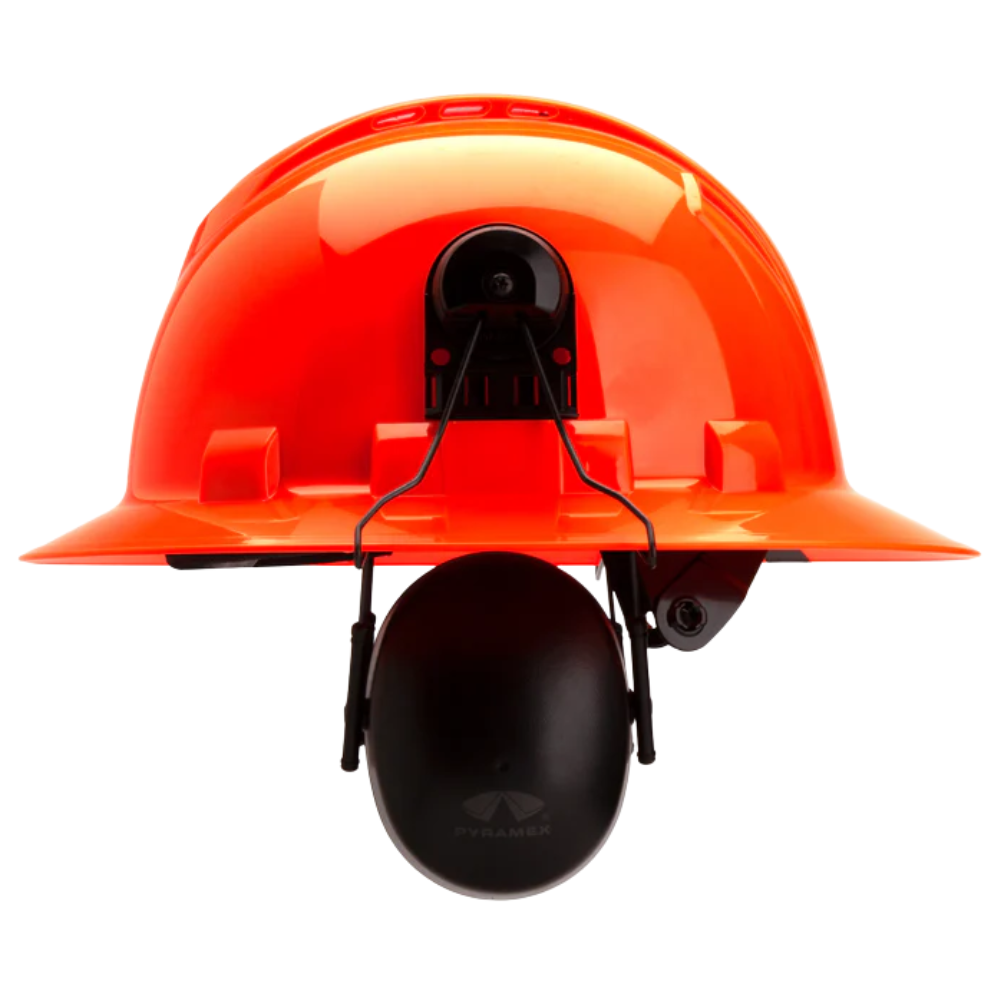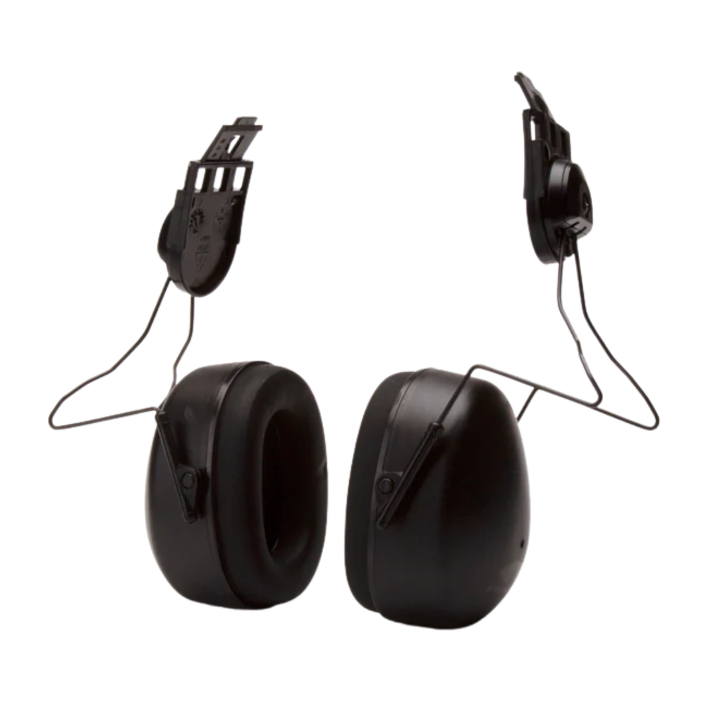 Hard Hat Mounted Earmuff Full Brim Cap Mounted Muff NRR 23dB Dielectric Soft foam ear cups Fits slotted full brim hard hats Easily accessible while working Flip down over ears to use Flip up when not in use