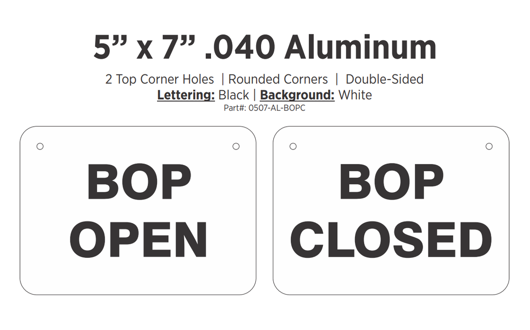 BOP Open/BOP Closed Aluminum Sign