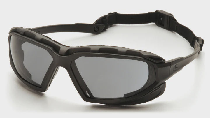 Fully adjustable elastic strap with quick release attaches to temples providing a secure fit.